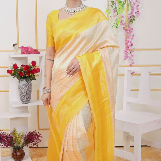 Color : Bright Yellow with Golden Zari Border & Pallu