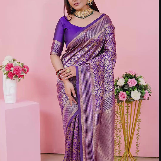 Royal Purple Banarasi Silk Saree with Gold Zari