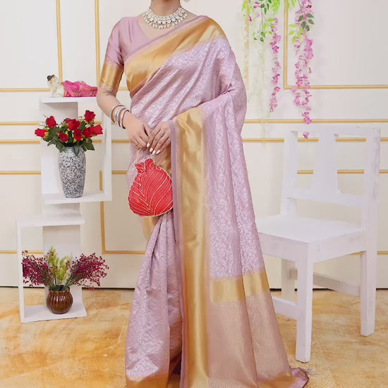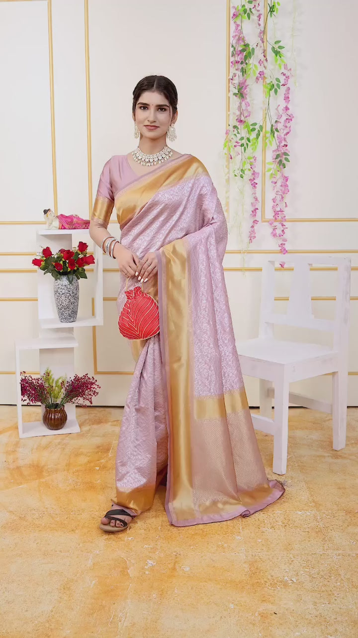 Soft Pink Kanjivaram Silk Saree – Golden Zari Border & Pallu